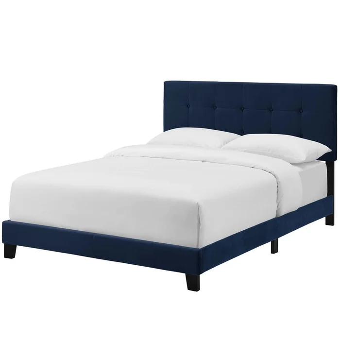Amira Full Upholstered Velvet Bed, Full Size, Velvet Fabric, Navy Blue, 15497