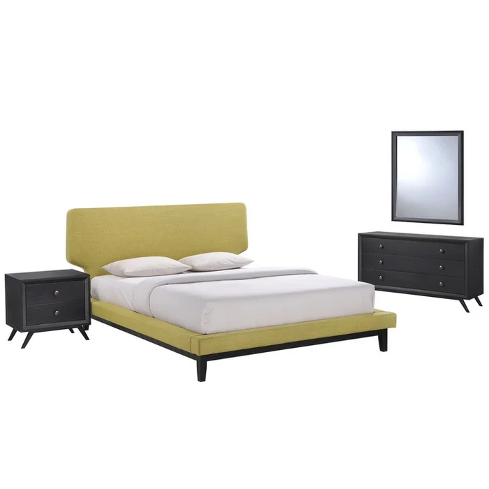 Bethany Four PCS Queen Size Bedroom Set, Green, Fabric, Wood