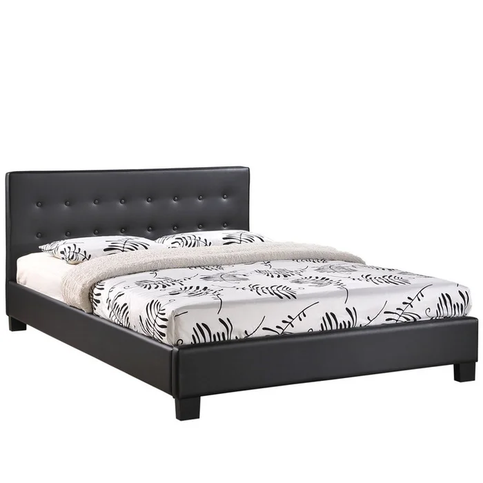 Caitlin King Vinyl Bed Frame, Black Faux Leather