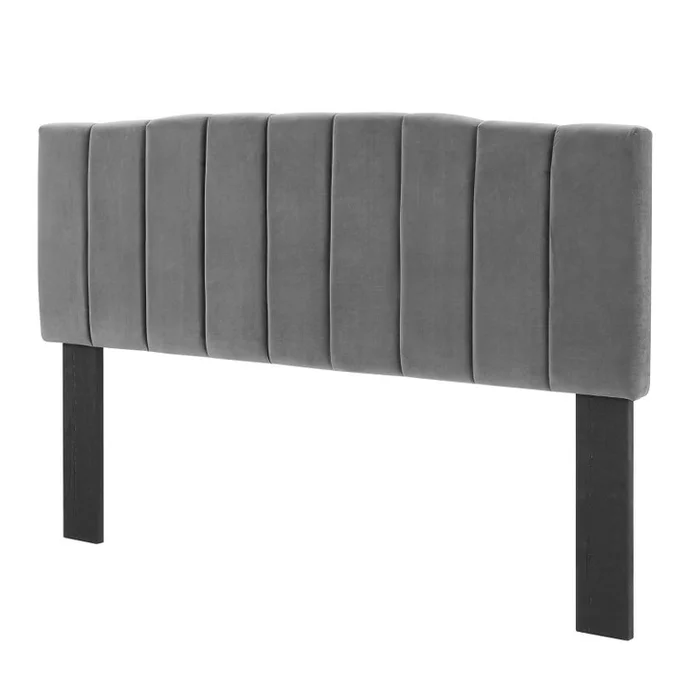 Camilla Channel Tufted King/California King Performance Velvet Headboard, Velvet, Dark Grey Gray, 21458