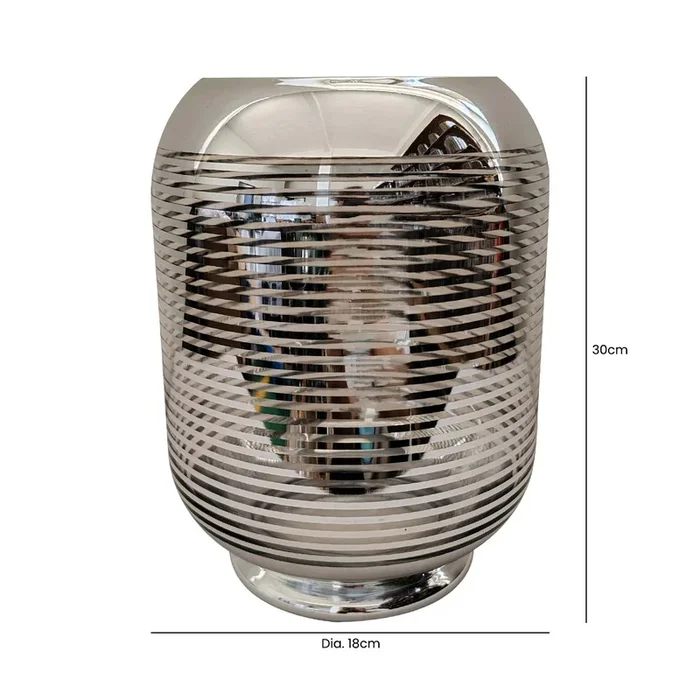 30cm Silver Stripe Glass Candle Holder