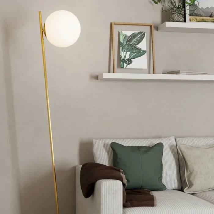 Rondo Brushed Brass & Opal Glass Floor Lamp
