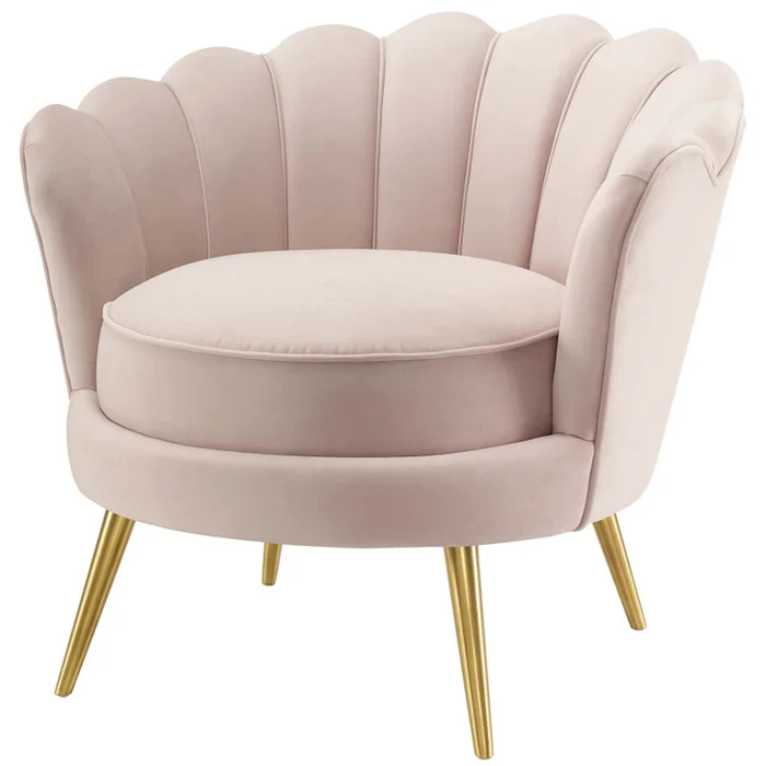 Admire Scalloped Edge Performance Velvet Accent Armchair, Velvet Fabric Metal Steel, Pink, 17364