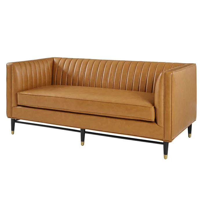 Devote Channel Tufted Vegan Leather Loveseat, Faux Vegan Leather, Tan, 20511