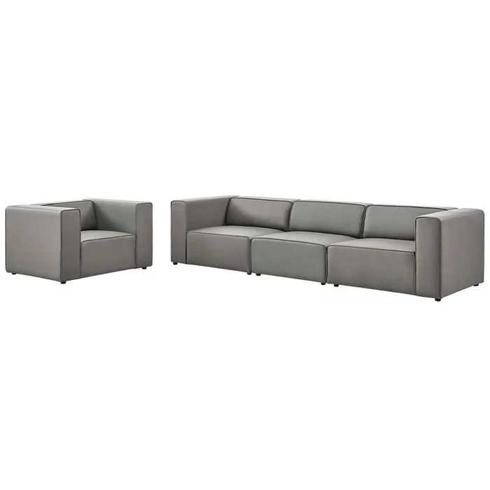 Mingle Vegan Leather Sofa and Armchair Set, Faux Vegan Leather, Grey Gray, 20535