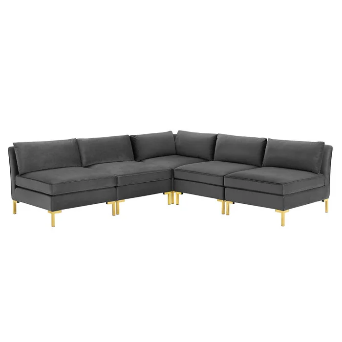 Ardent 5-Piece Performance Velvet Sectional Sofa, Velvet, Grey Gray, 19629