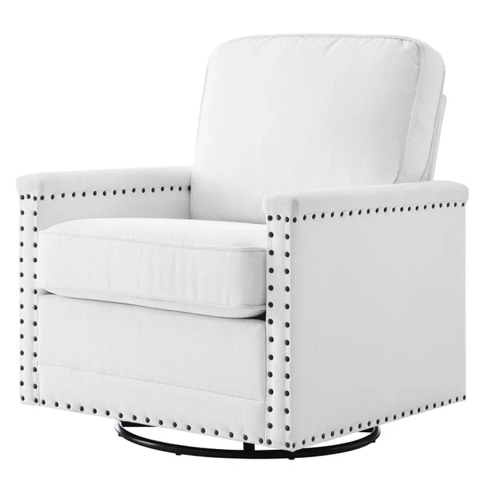 Ashton Upholstered Fabric Swivel Chair, Fabric, White, 20845