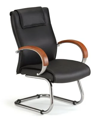 Visitors Chair – Executive Leather Guest Chair with Wood Accents – OFM – 565-L