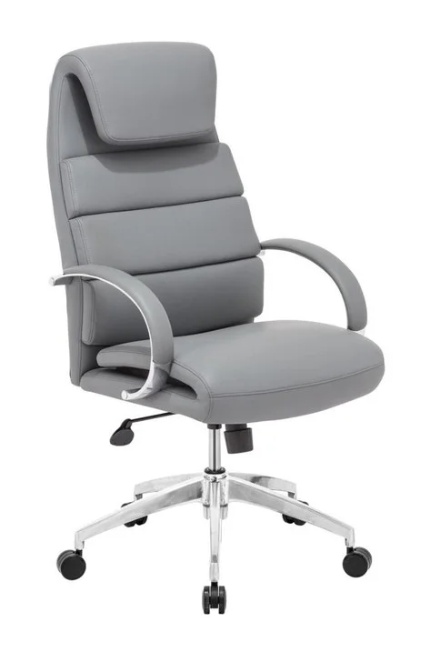 Lider Comfort Office Chair, Gray Leatherette Aluminum