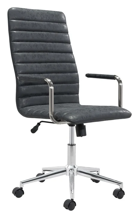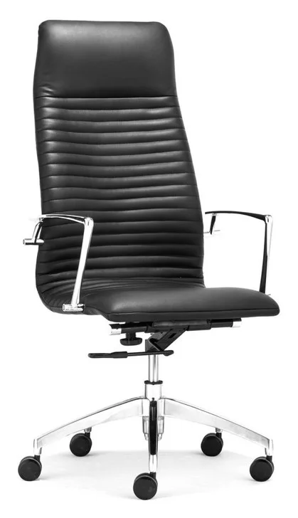 Lion High Back Office Chair, Black Leatherette Chrome Steel