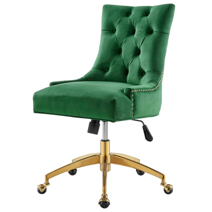 Regent Tufted Performance Velvet Office Chair, Velvet, Gold Green, 20257