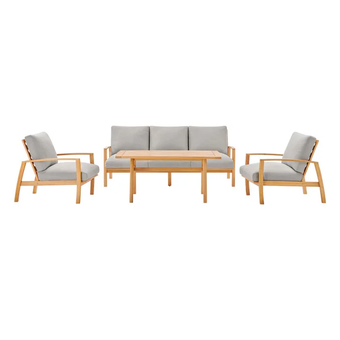Orlean 4 Piece Outdoor Patio Eucalyptus Wood Set, Wood, Brown Natural Light Grey Gray, 18552