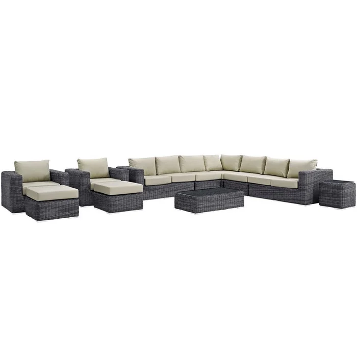 Summon Eleven PCS Outdoor Patio Sunbrella Sectional Set, Beige, Rattan 9852