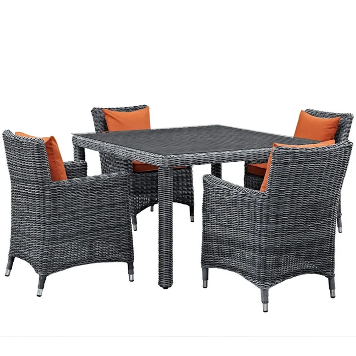 Summon Five PCS Outdoor Patio Sunbrella Dining Set, Orange, Rattan 10978