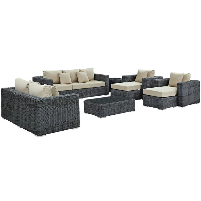 Summon Nine PCS Outdoor Patio Sunbrella Sectional Set, Beige, Rattan 9842