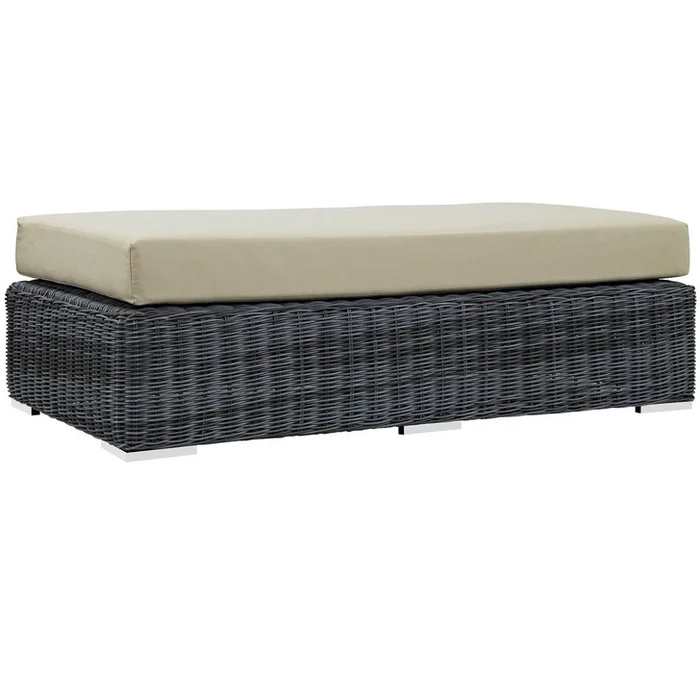 Summon Outdoor Patio Sunbrella Rectangle Ottoman, Beige, Rattan 9792