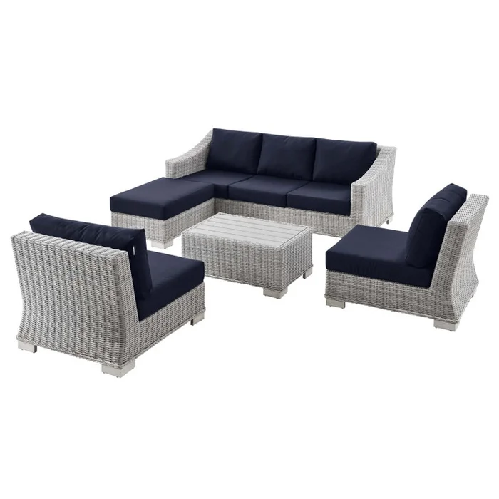 Conway 5-Piece Outdoor Patio Wicker Rattan Furniture Set, Rattan, Wicker, Light Grey Gray Blue Navy, 23399