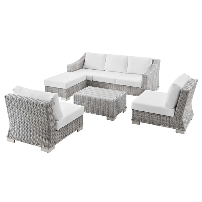 Conway 5-Piece Outdoor Patio Wicker Rattan Furniture Set, Rattan, Wicker, Light Grey Gray White, 23400