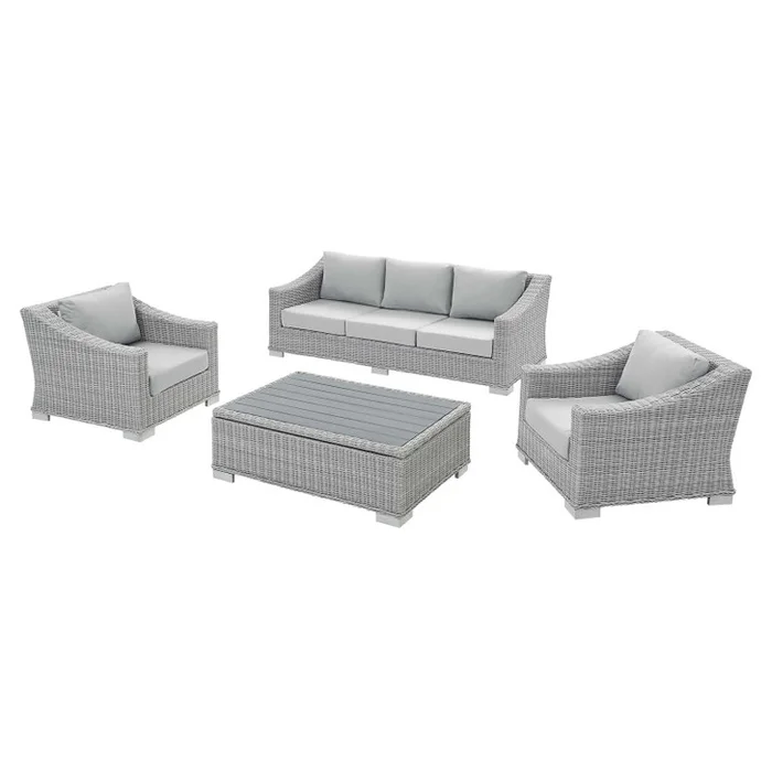Conway Sunbrella® Outdoor Patio Wicker Rattan 4-Piece Furniture Set, Rattan, Wicker, Grey Gray, 19836