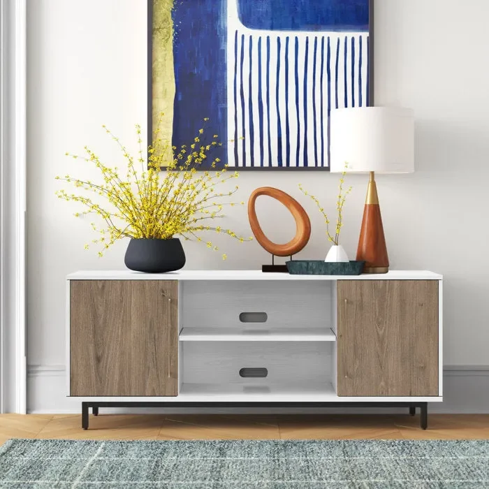 White/Antiqued Gray Oak Osterberg TV Stand for TVs up to 65″