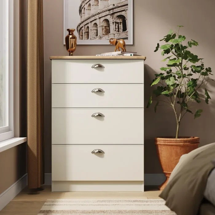 Victoria 4 Drawer Deep Chest of Drawers with Oak Top