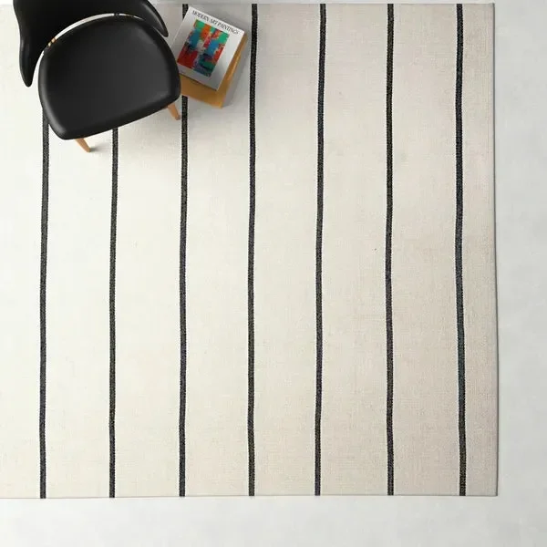 Foundry Striped Handmade Handwoven Indoor / Outdoor Area Rug in Ivory/Dark Gray rectangle 4’x6′