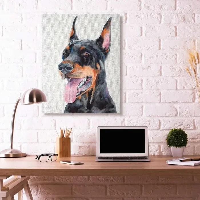 Cute Doberman Dog Pet Animal Watercolor Painting, Proudly Made in USA – Multi-Color