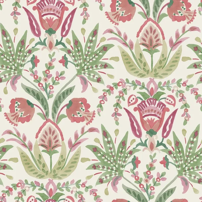 York MN1914 Seaside Jacobean Green & Red Wallpaper