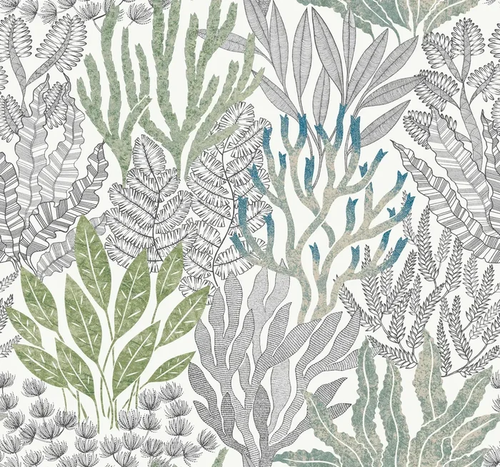 York RT7803 Coral Leaves Blue & Green Wallpaper