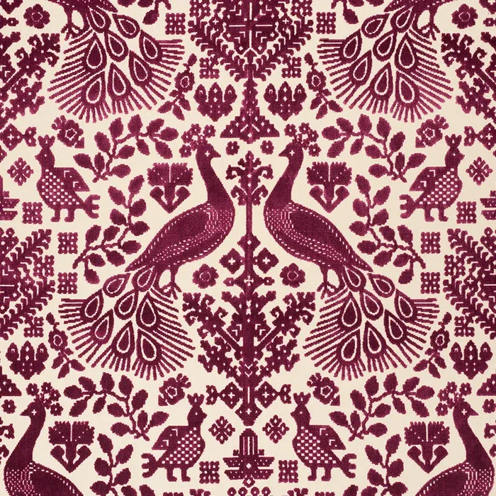 Schumacher Pavone Velvet Garnet Fabric