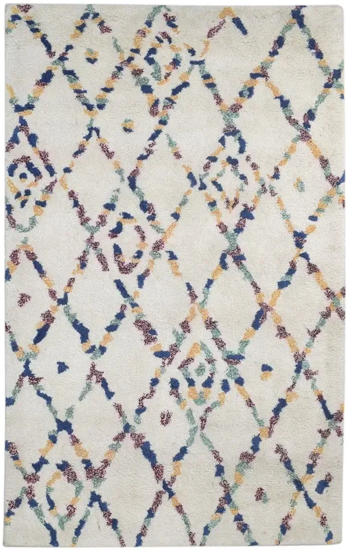 Binny Pet Yarn Ivory Rug 5′ X 8′ Shag Hand Tufted Moroccan Trellis