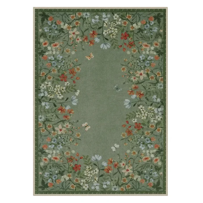 Solene Washable Modern Blooming Floral Garden Green Rug