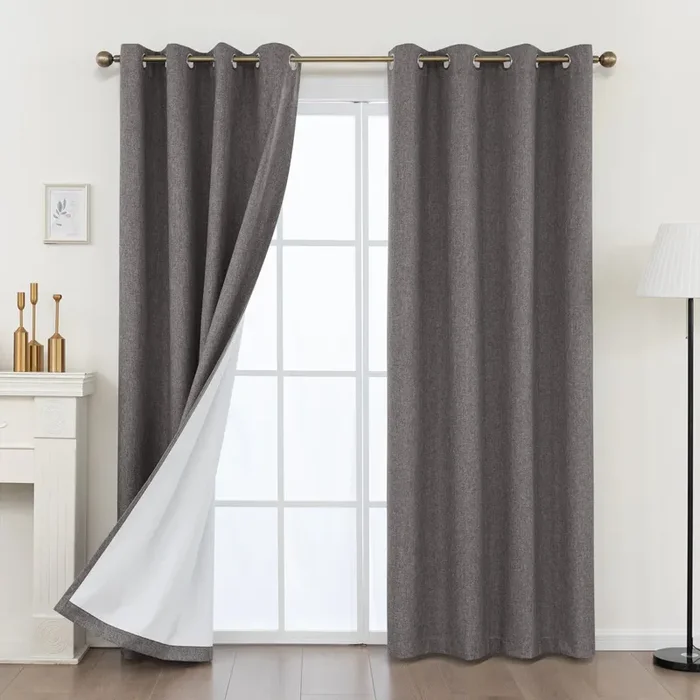 Aslyn Linen Textured Thermal InsulatedBlackout Grommet Curtain Pair