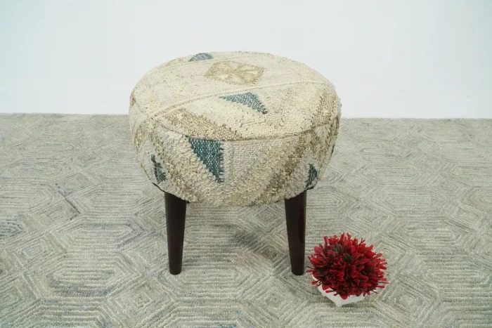 Handmade Boho Natural Brown and Ivory Wooden Stool
