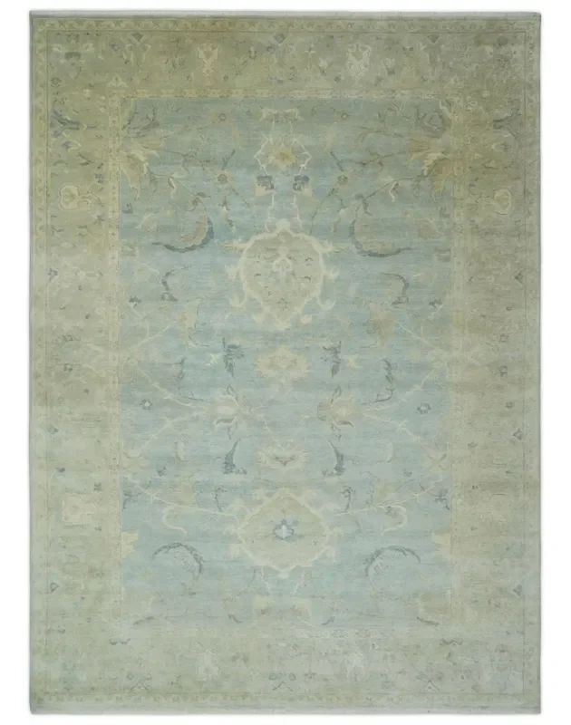 Antique Style Olive and Blue Hand knotted Traditional Oushak 8×10 wool Area Rug