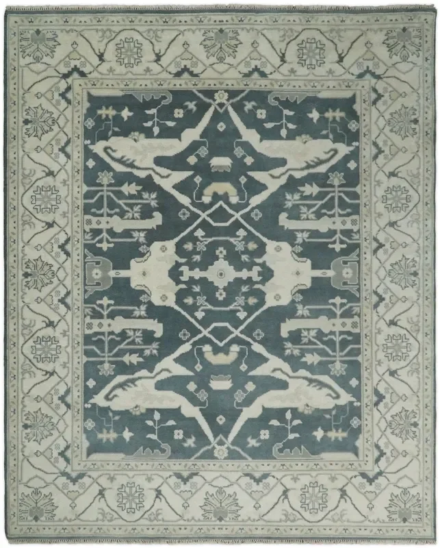 Hand Knotted 8×10 Antique Style Oriental Oushak Gray, Ivory and Beige Wool Area Rug