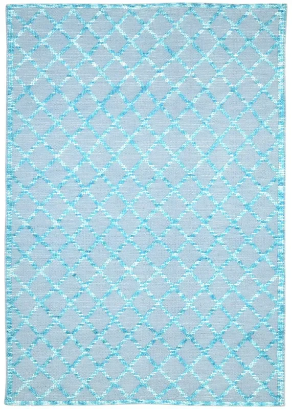 Courtnay Wool Blue Rug 5′ X 7′ Modern Dhurrie Moroccan Trellis