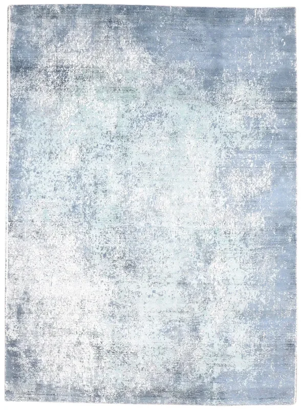 Elsbeth Hand Woven Blue Silk Rug 5′ X 6′ Modern Indian Abstract