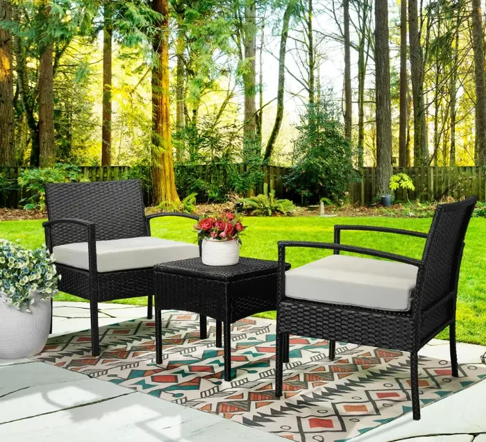 3-Piece Wicker Patio Conversation Set with Tan Cushions