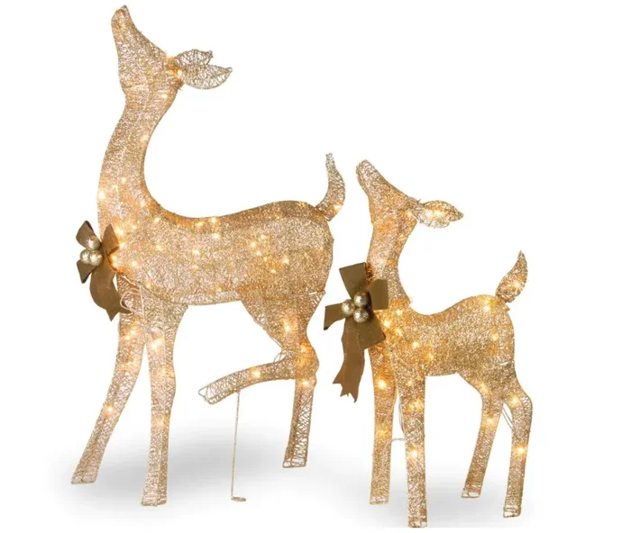 38 in. and 28 in. Fawn and Doe Decoration with Clear Lights, 2-piece set