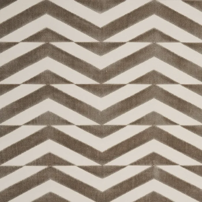 Schumacher Broken Chevron Cut Velvet Taupe On Ivory Fabric