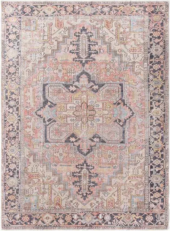 Tobey Solid and Border Dusty Pink Washable Area Rug