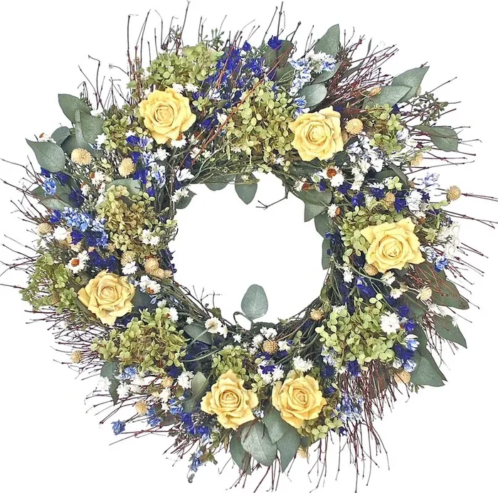 22″ Yellow Rose and Hydrangea Wreath (#K2873)