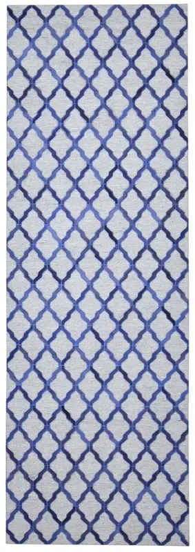 Nathalia 3X9 Rug Leather / Cotton Blue Modern Hand Woven Moroccan Trellis