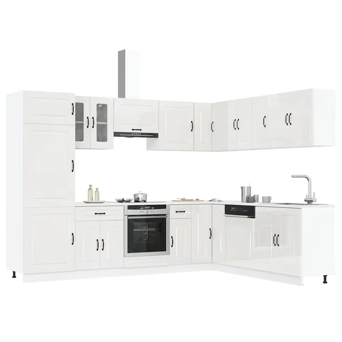 14 Piece Kitchen Cabinet Set Kalmar Gloss White Engineered Wood