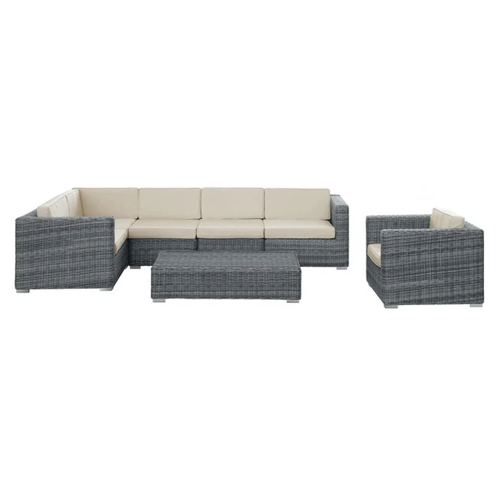 Surround yourself with a modern landing pad of exploration. Positioned to advance your outdoor patio, backyard, or pool area, Avia helps you bestow acceleration to your outward achievements and social celebrations. Set Includes: One – Avia Outdoor Wicker Patio Coffee Table One – Avia Outdoor Wicker Patio Left Arm Section One – Avia Outdoor Wicker Patio Right Arm Section Three – Avia Outdoor Wicker Patio Armless Sections Two – Avia Outdoor Wicker Patio Armchairs Two – Avia Outdoor Wicker Patio Ottomans