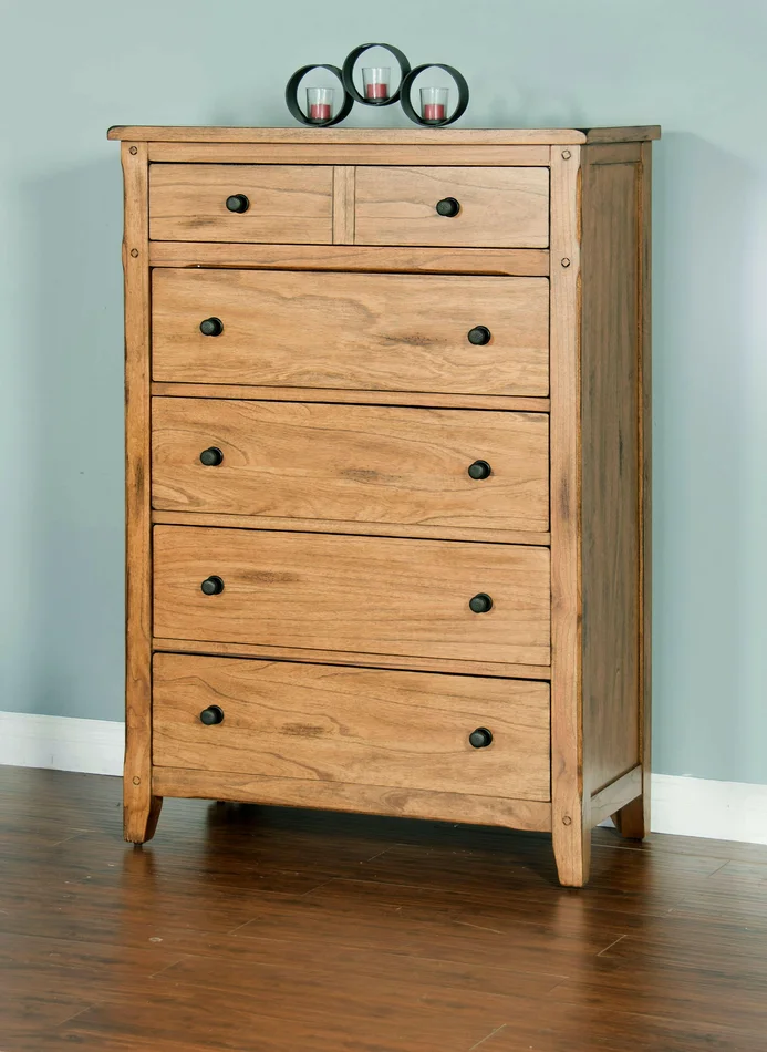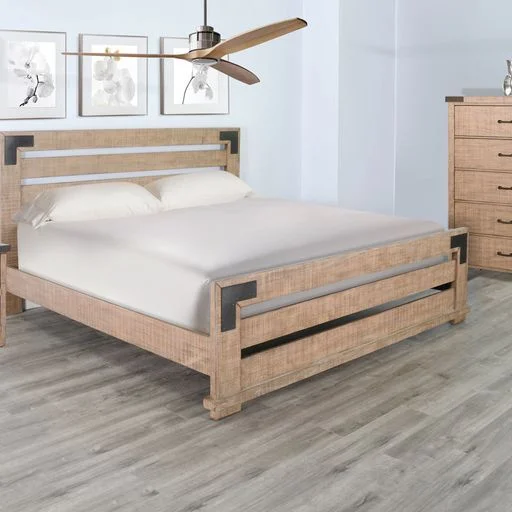 Made with distressed mahogany solids and veneers, this four-piece occasional table set is sleek, transitional-modern, and elegant with a light wire brush application that adds character to the weathered brown finish.