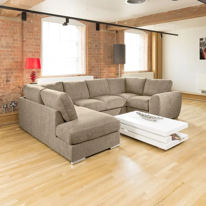Elevate your living space with this large U shape corner sofa, perfect for modern homes. This Gala modular sofa blends bold design with comfort, upholstered in ultra-durable beige Moda fabric. A true statement piece, this neutral corner sofa delivers style, versatility, and durability – making it the ideal contemporary sofa choice.