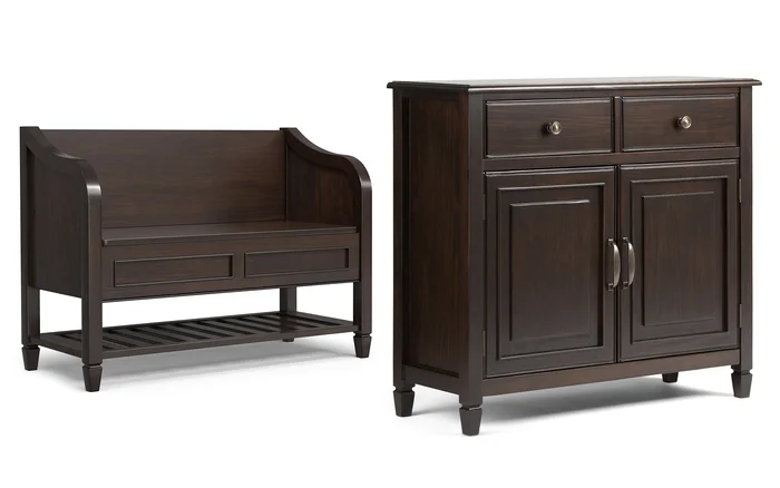 The Artisan Sideboard Buffet in Dark Chestnut Brown brings rich tones and functional design to your home. Crafted from solid wood with a classic, hand-applied finish, it offers three spacious drawers, two tempered glass-paneled doors, and adjustable shelves for versatile storage. Perfect for dining rooms, living spaces, or entryways, it organizes dinnerware, books, or electronics with ease. The Artisan Sideboard Buffet in Dark Chestnut Brown combines timeless elegance and practicality for a stunning addition to any room.